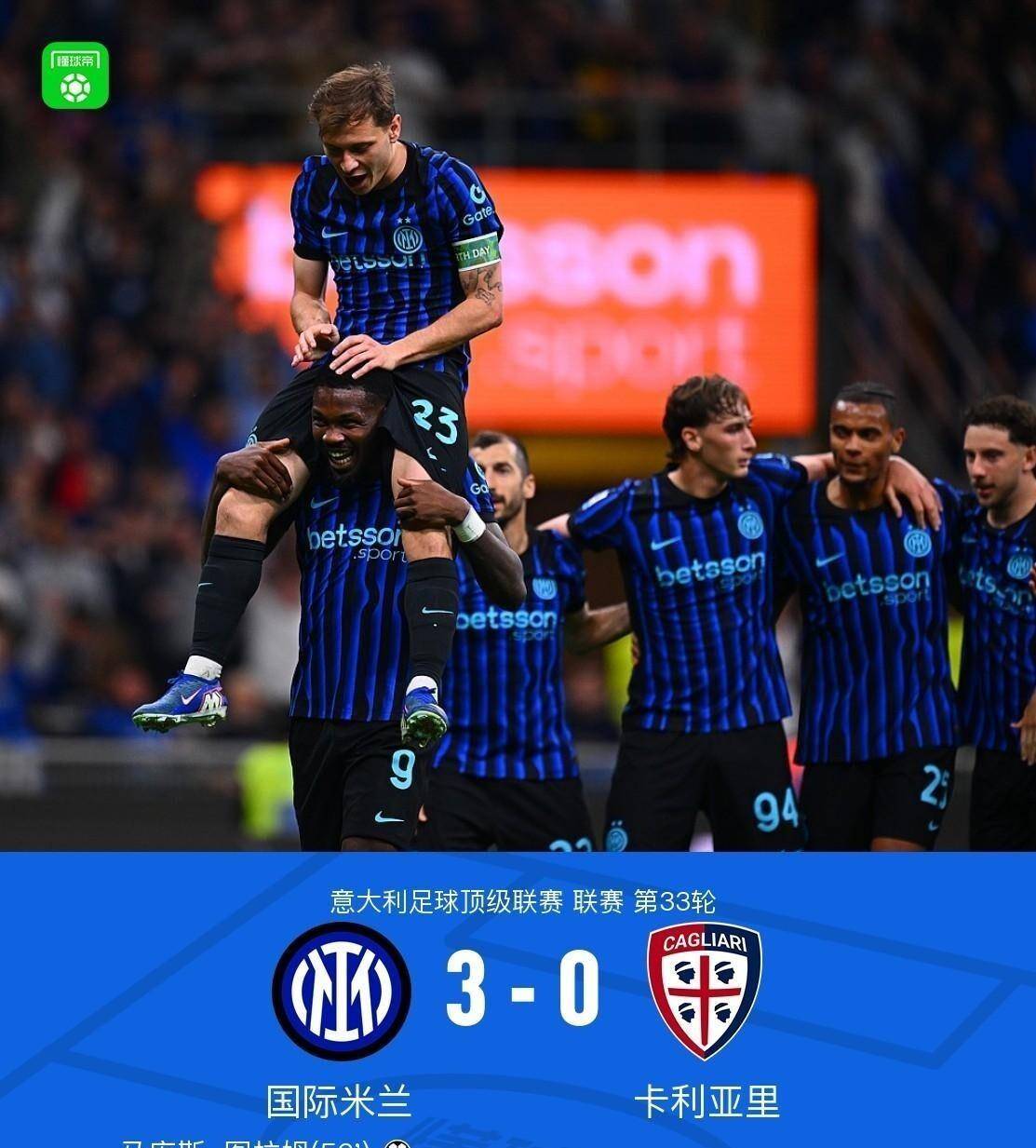国米“虐菜”稳如狗,冠军奖杯已到手!9分领跑,意甲悬念提前大结局?