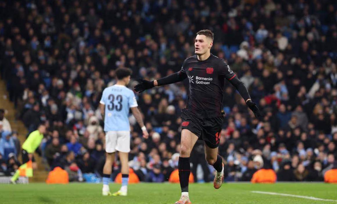 第23分钟,场上平衡被打破。 勒沃库森发起快速反击,科法内在禁区内的回敲找到格里马尔多,后者跟进抽射破门。 伊蒂哈德球场瞬间安静下来,主场球迷看着客队球员在角旗区庆祝。
